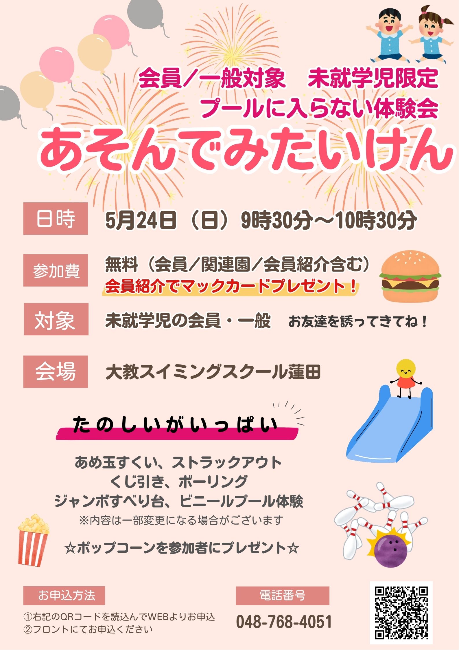 【蓮田】5/24(日)プールに入いらない体験会“あそんでみたいけん”大募集