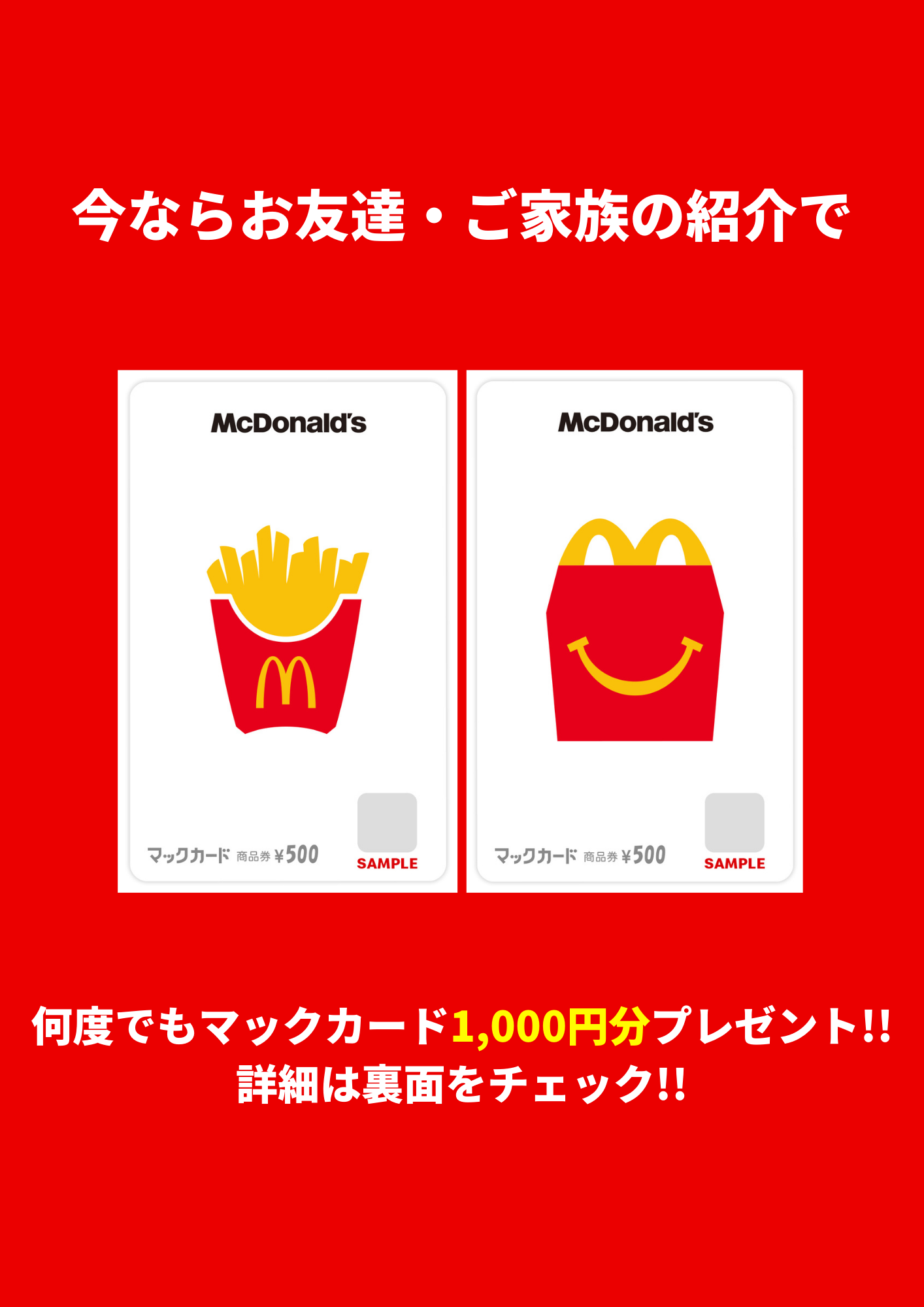 【2月,3月限定!!】マックカード1,000円分ゲット!?