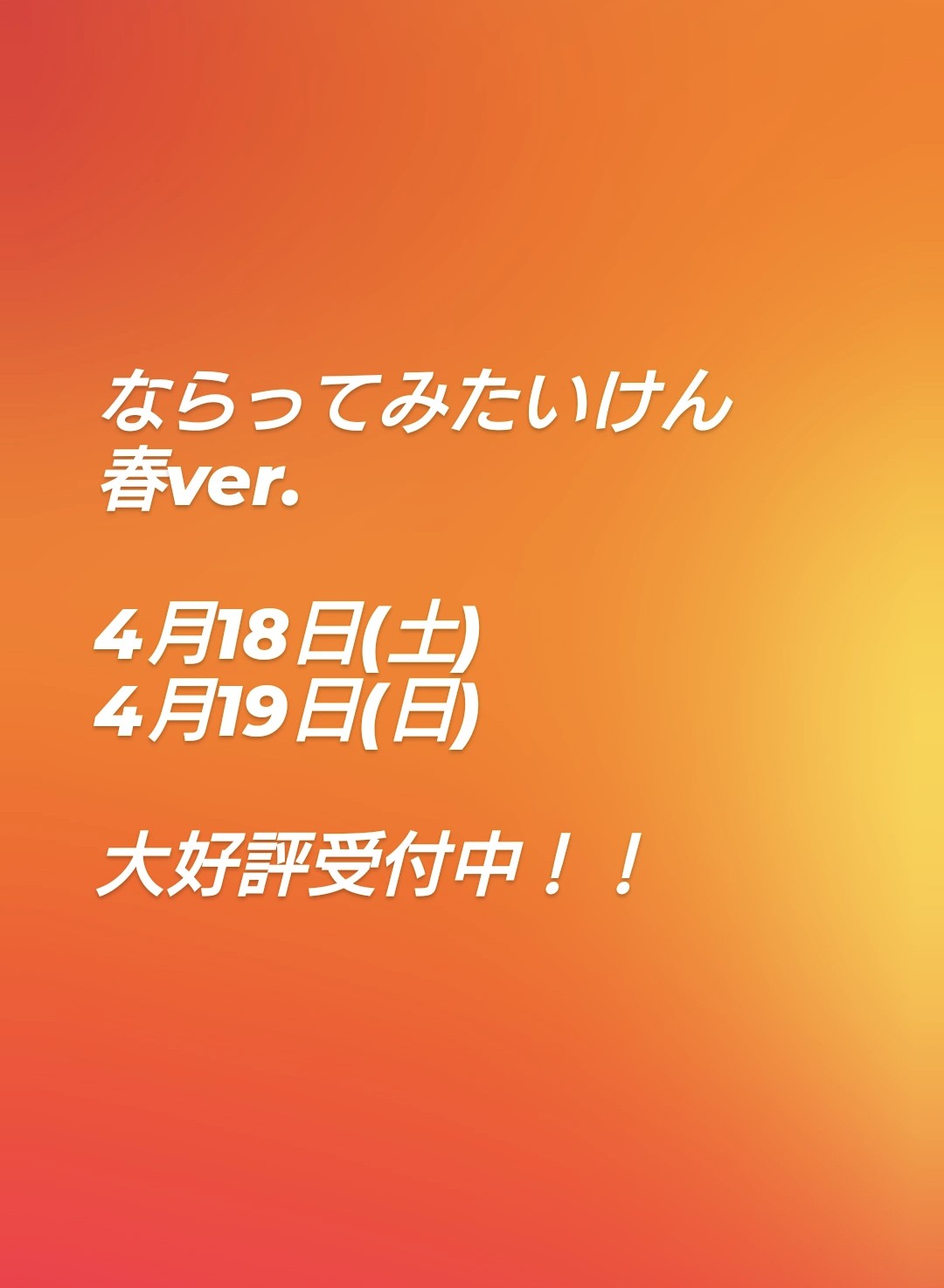 【春休み短期教室】4月のならってみたいけん春ver. 情報掲載中!!