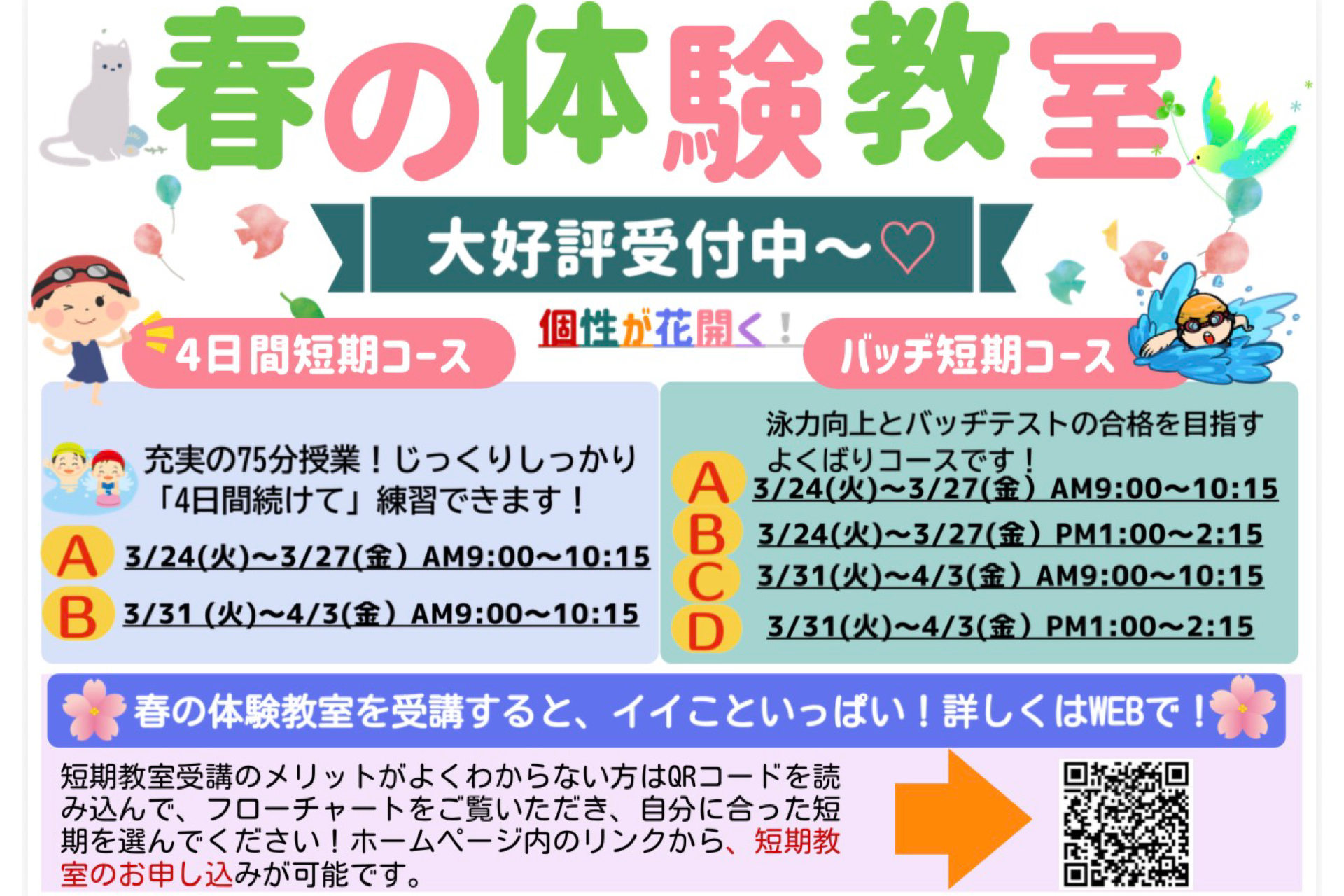 🌸日曜&祝日のスペシャルな体験会🌸楽しく練習・楽しくプールデビューしよう!