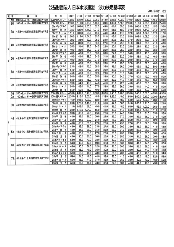 6級は、クロール、背泳ぎ、平泳ぎのうち1種目の計測を行います。