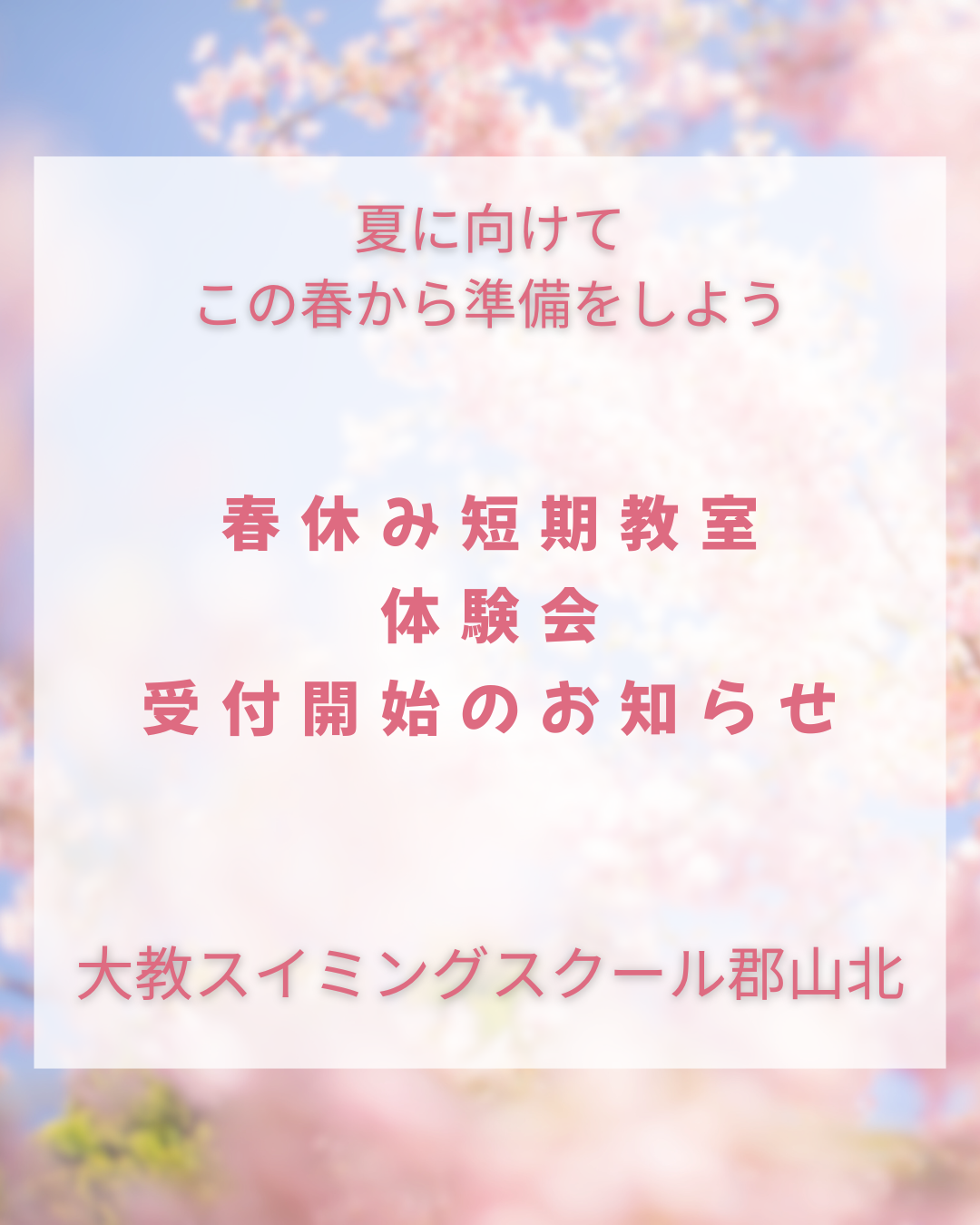 いよいよ明日2月2日(月)AM10:00~ 春休み短期教室・体......