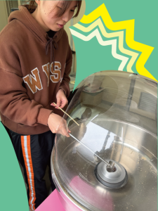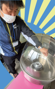 先生たちががんばって作るわたあめをぜひもらいに来てね☆