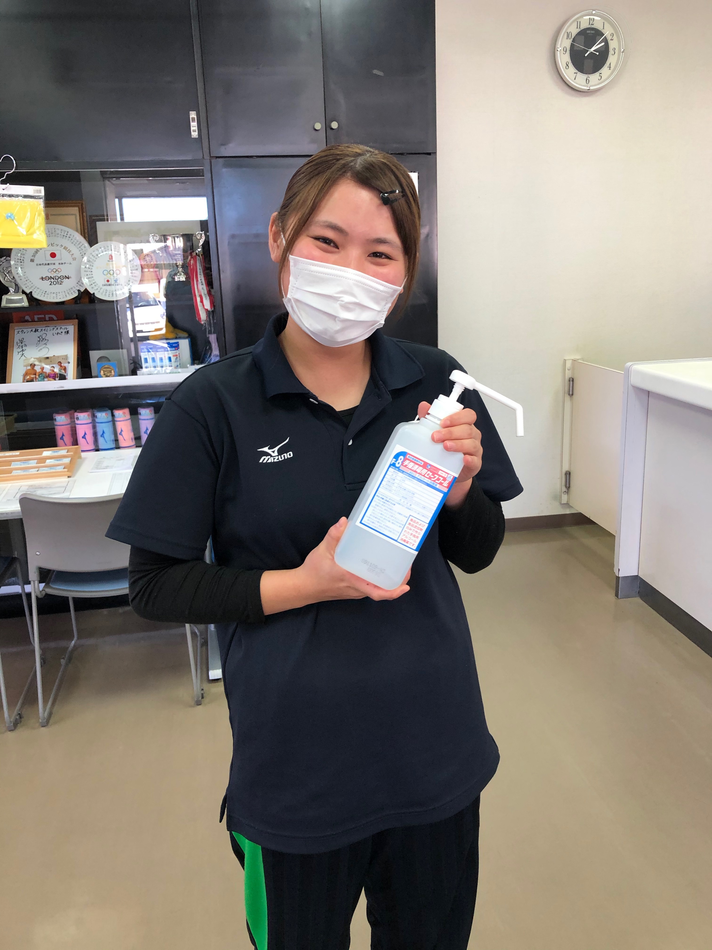 指導スタッフは、レッスン中はマウスシールド、退水中は極力、不織布マスクを着用しております。