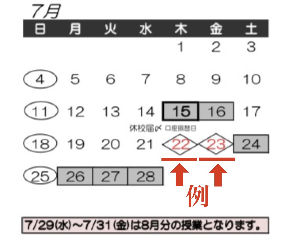 スクールカレンダーの◇マークのお休み