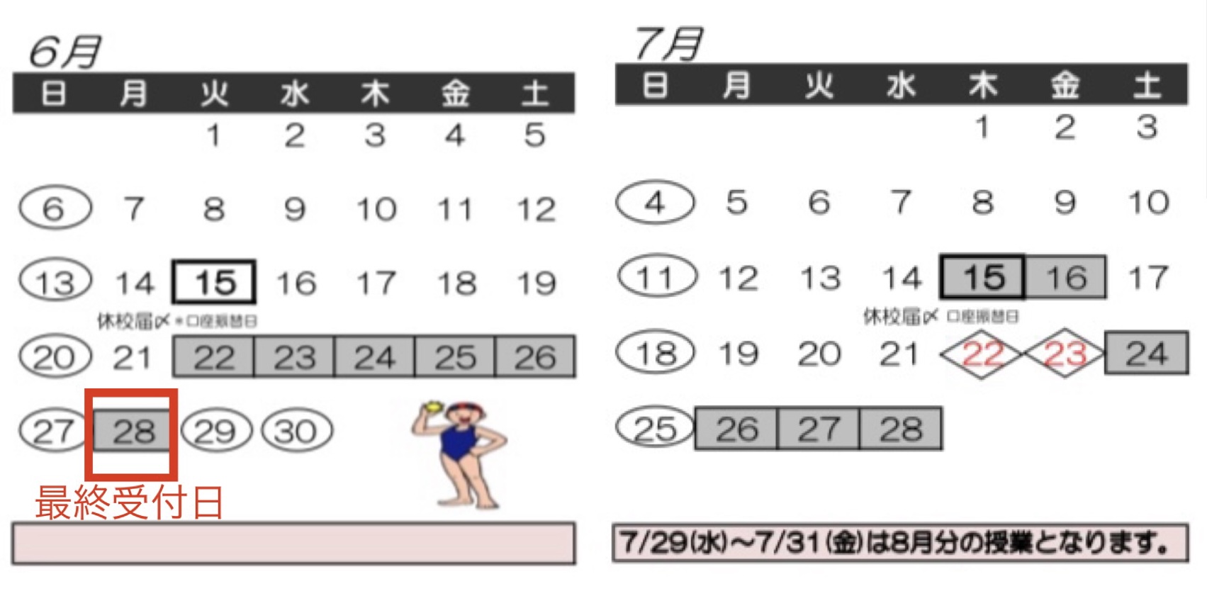 (※一度でも出席されるとその月は休校できません。)