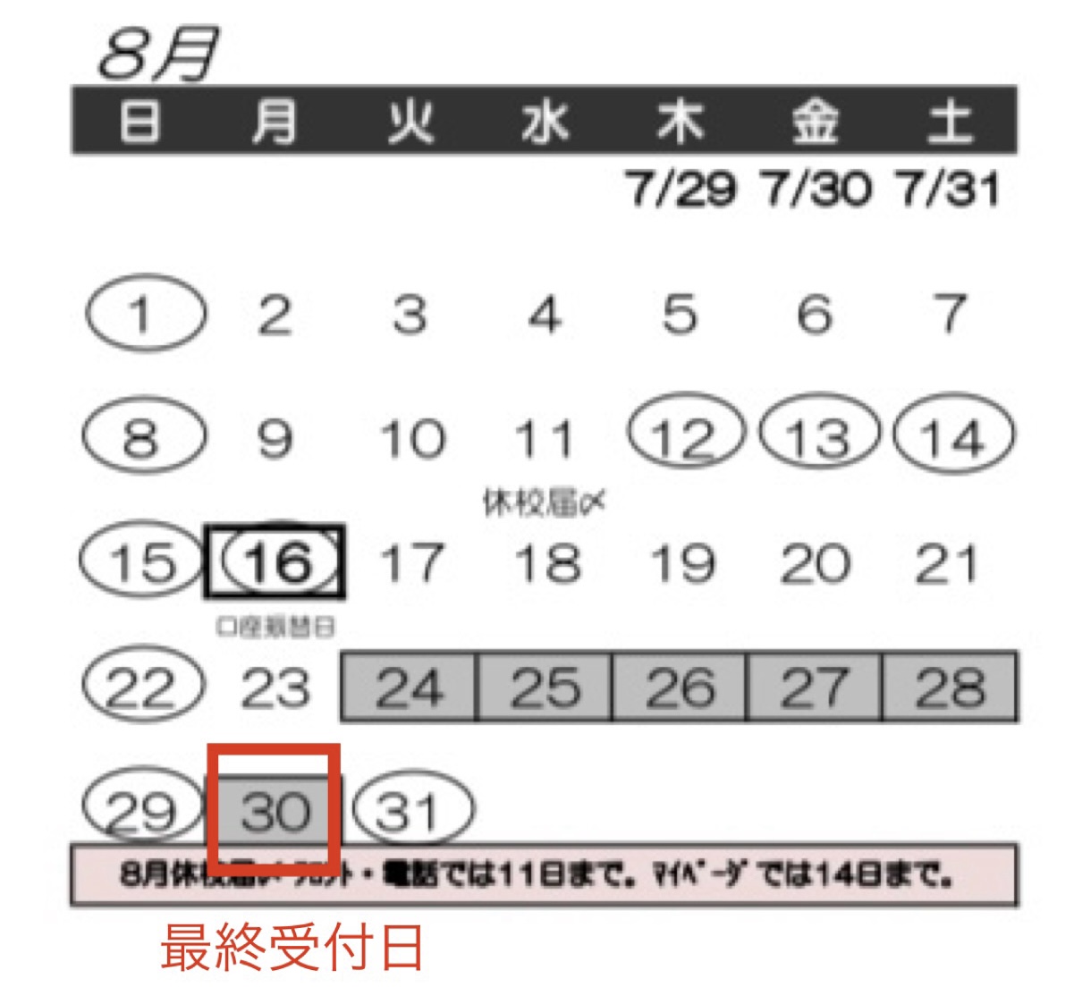 休校希望月の14日までです。