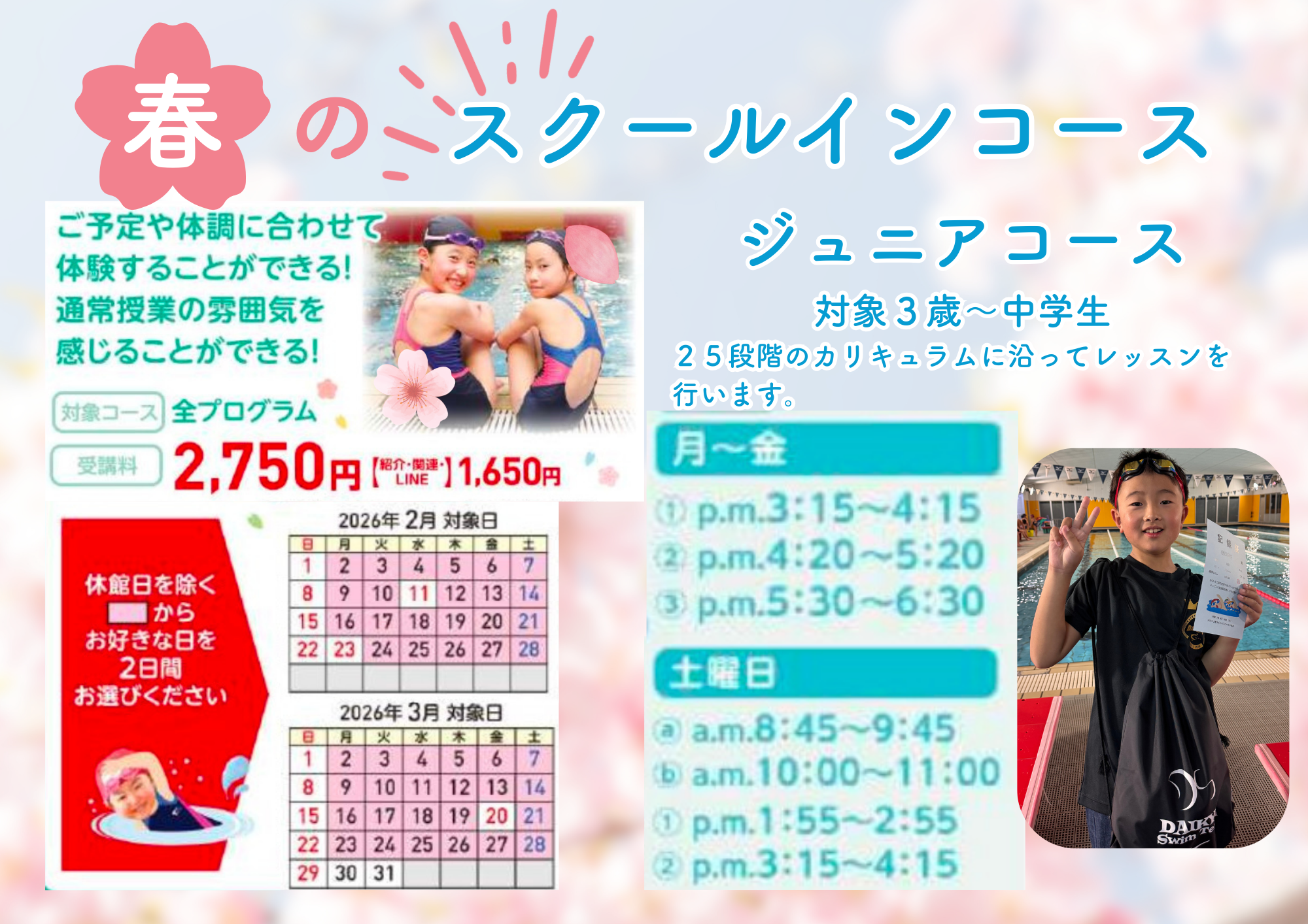 🌸春のスクールイン🌸 ジュニアコースのお知らせ