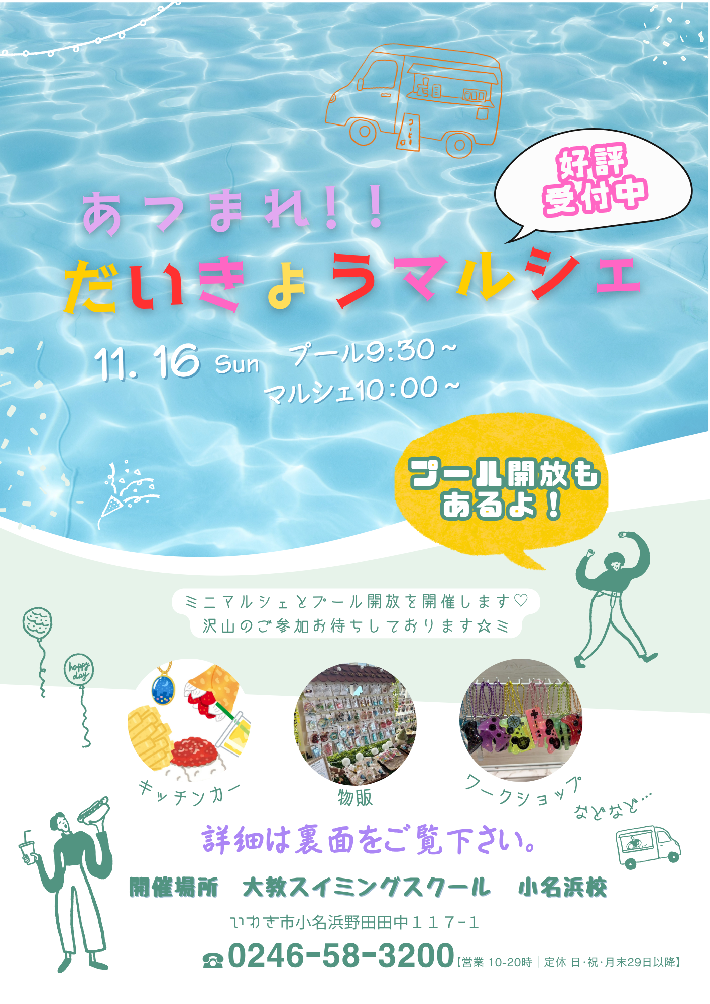 11月16日(日)の プール開放&ミニマルシェ💕 大好評受付...... -