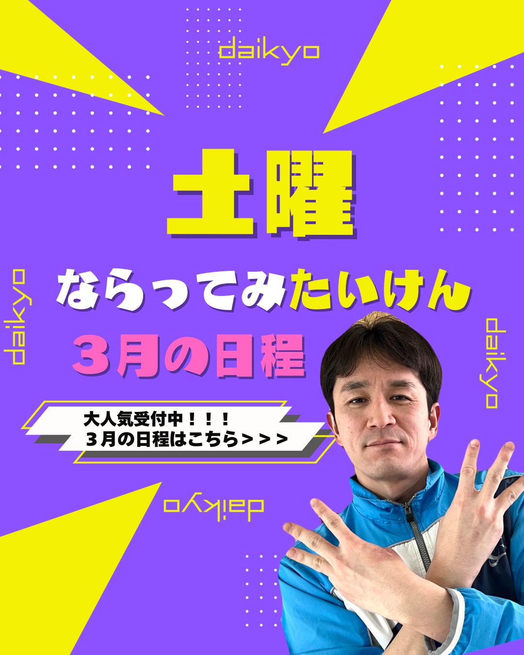 😆大人気体験コース😎 👦土曜ならってみたいけん👧 3月の日程...... -