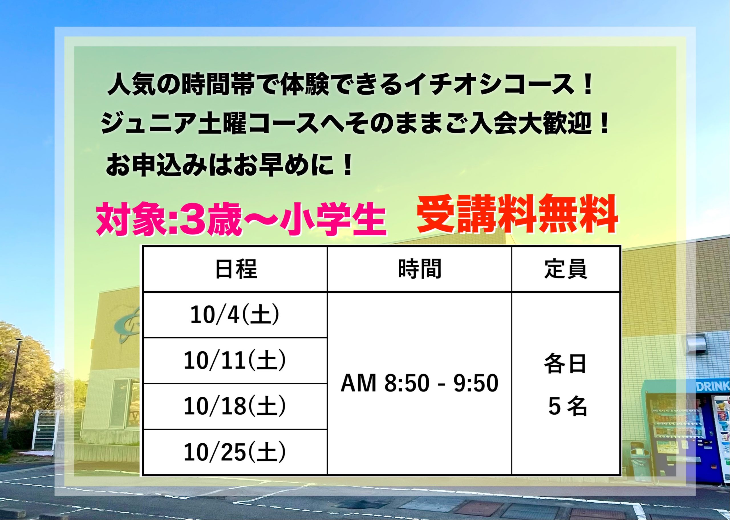 10月もやります❕❕ 秋の土曜ならってみたいけん参加者募集中!