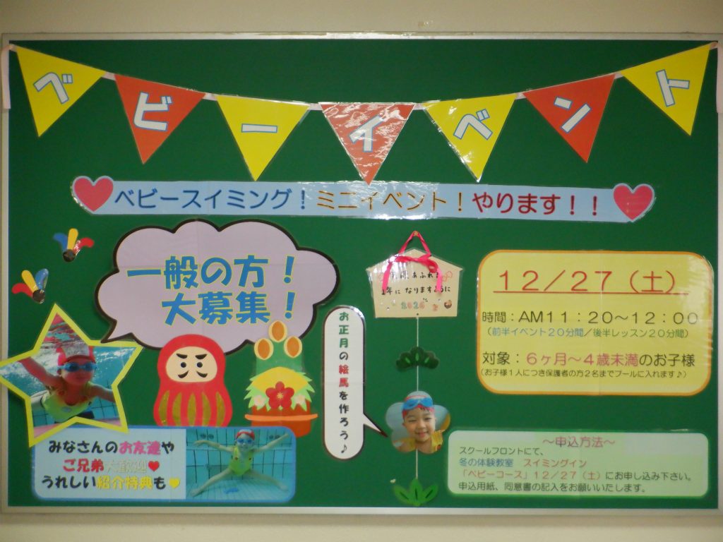 (冬の体験教室:スイミングインコース:ベビースイミング:12/27(土)にお申し込み下さい。)