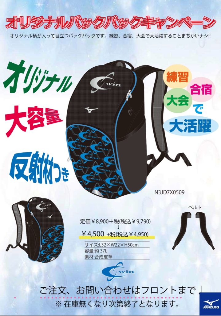 スウィンオリジナルバックパック販売!(個数限定)