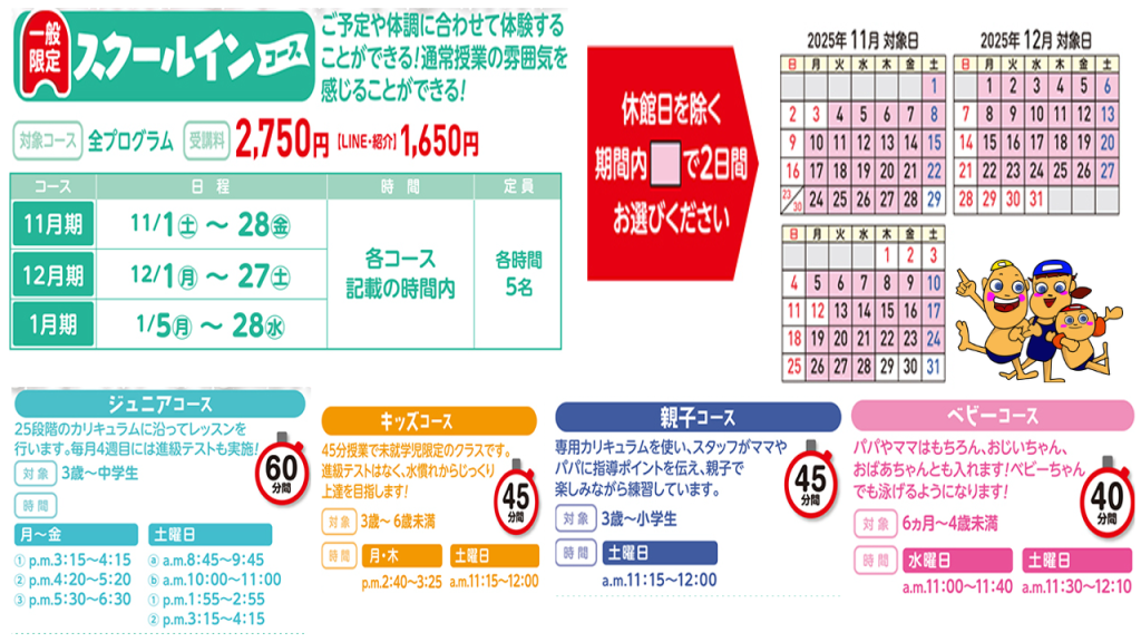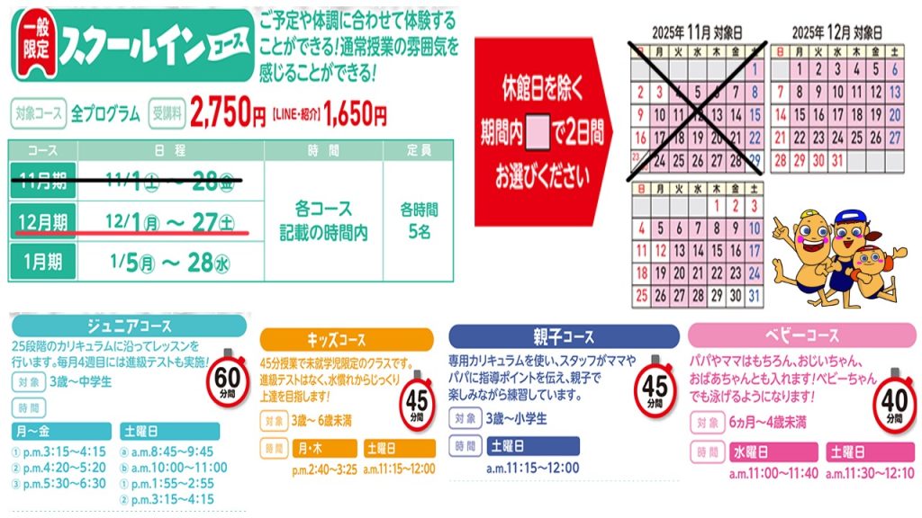 冬の短期教室 12月期スクールインコース 好評受付中