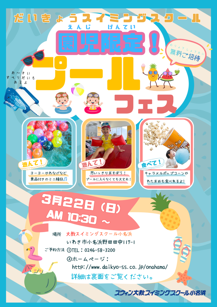 園児限定🌸プールフェス🌸開催のお知らせ