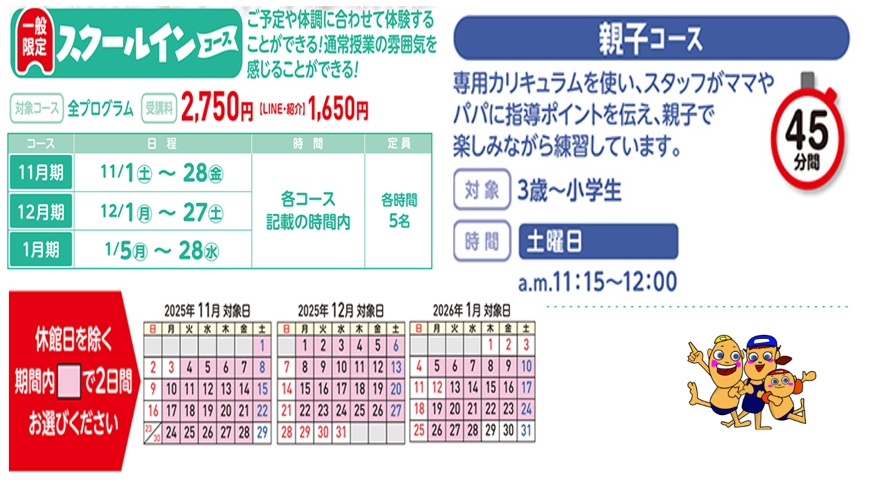 冬のスクールイン 親子コースのお知らせです 専用カリキュラム...... -