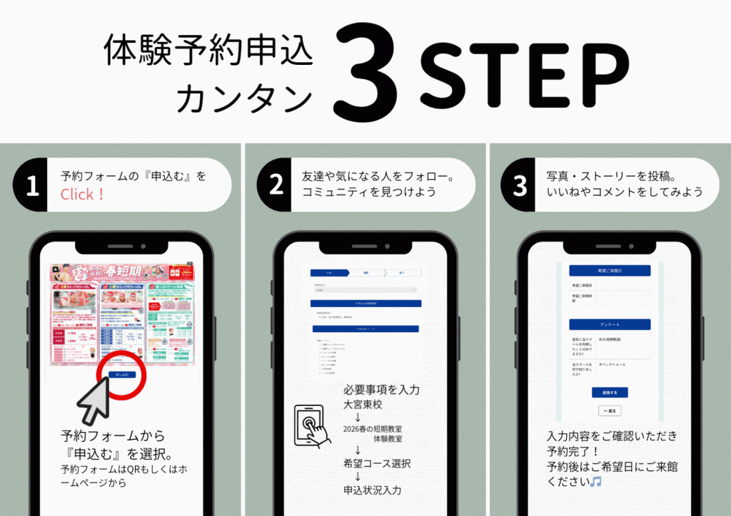 【お申し込み方法】 スクールフロント、お電話、またはWEBにて受付いたします!